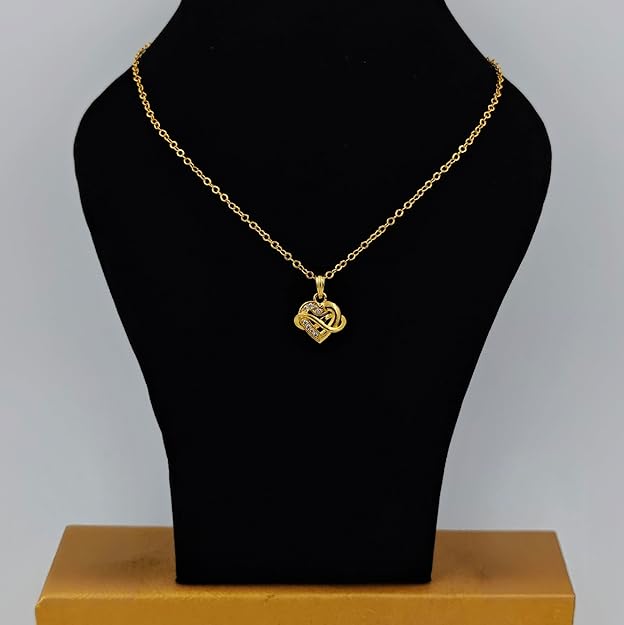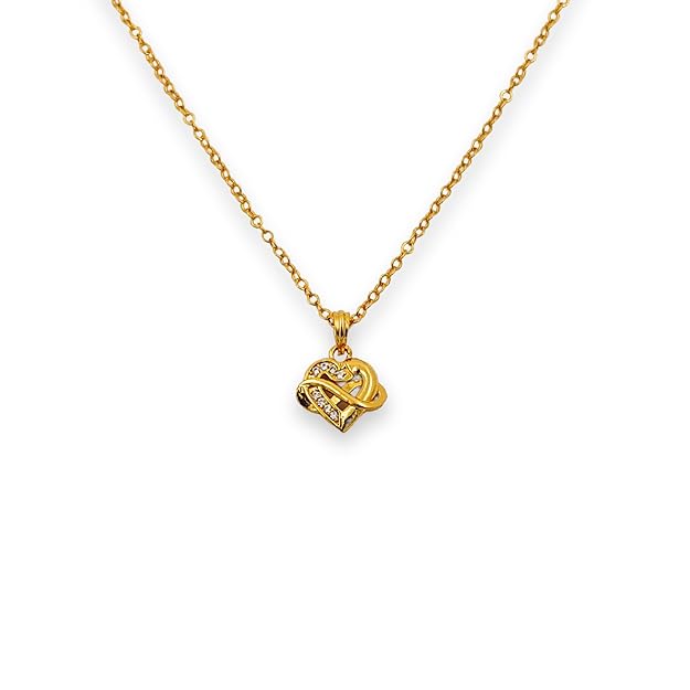 1 Gram Micro Gold Plated Heart Necklace Chain and Sleek Pendant Locket with Zircon Stones