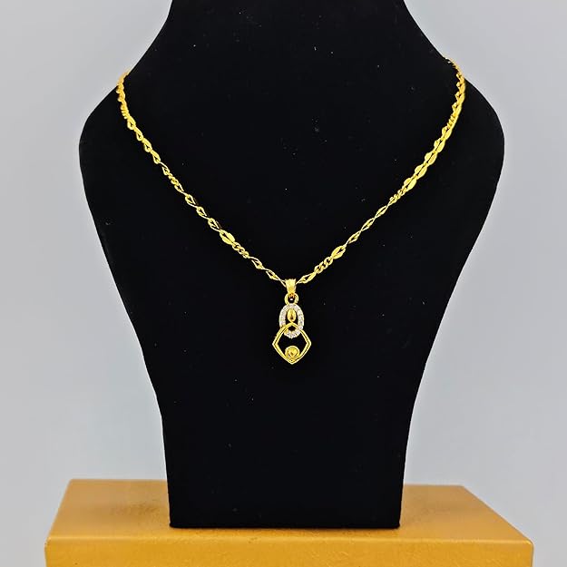 1 Gram Micro Gold Plated Stylish Geometric Pendant Chain with CZ Accents