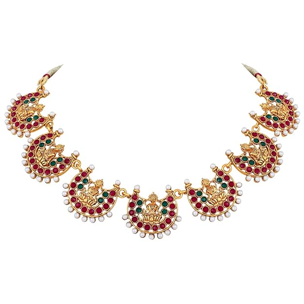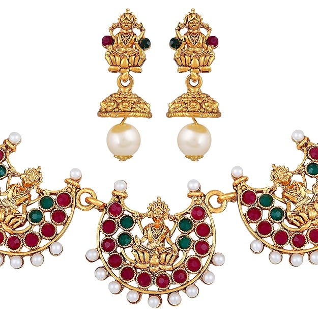 18k Gold Plated Traditional Temple Choker Necklace Wedding Party Stylish Jewellery Set