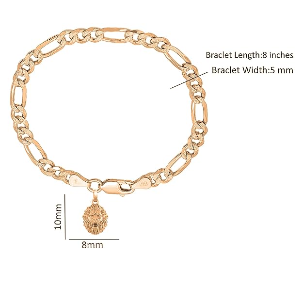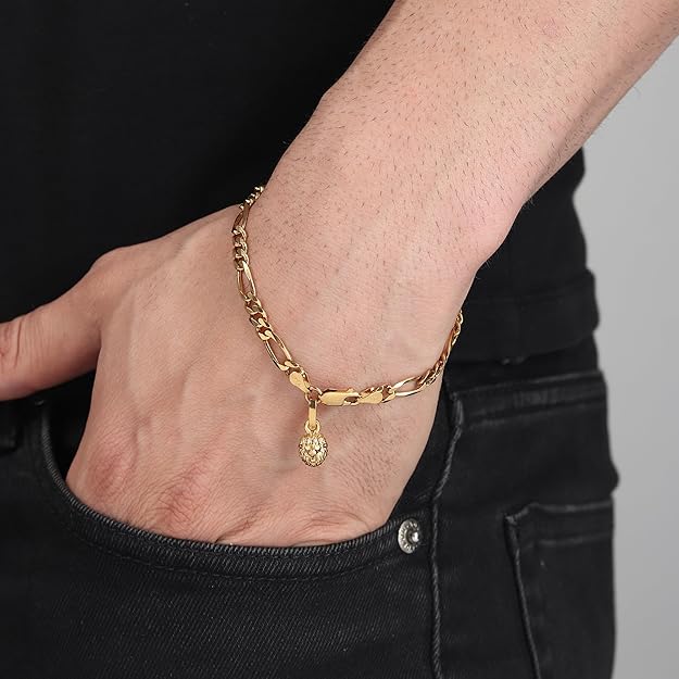 22KT gold plated 92.5% pure Sterling Silver Figaro Designer Bracelet with Charm for Men & Boys