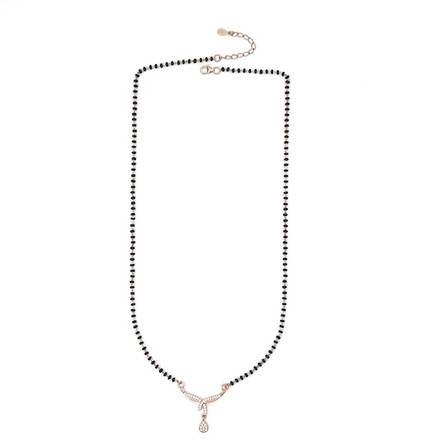 925 Sterling Silver Traditional Black Beaded Kala Mani Mangalsutra with Rose Gold for Women