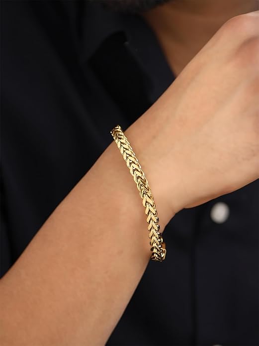 • Elegant Gold Plated Smooth Finished Stainless Steel Curb Chain Bracelet for Men. Engraved and Eye catched plating makes it never fading of color, and keeps the shine if it is taken care. Our Product is perfect for valentines Anniversary Birthday gift for Husband boyfriend Men.