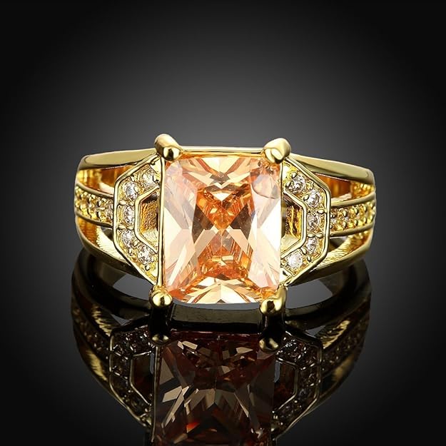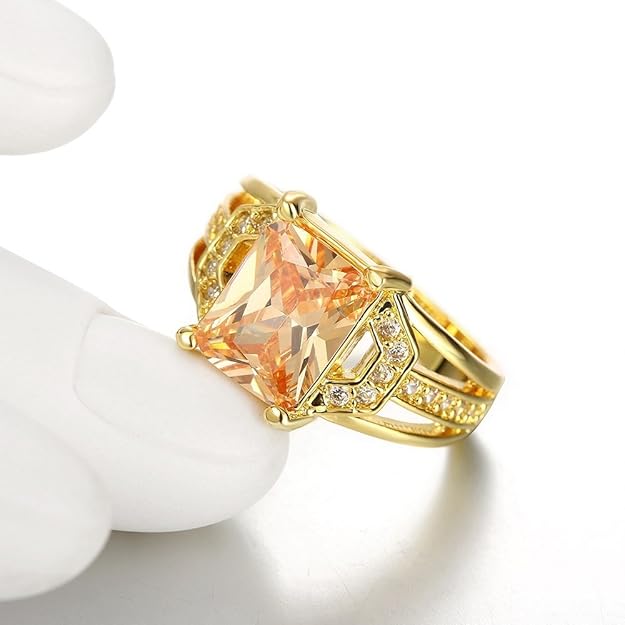 Yellow Sapphire Style Big Yellow Crystal Golden Ring for Women and Girls